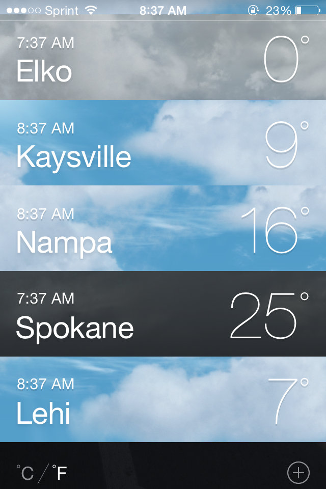15. This was back in December, I pulled up the current weather for everywhere we have parents/siblings (Boise was the same as Nampa) so that I'd know who to be jealous of - spoiler alert, it was Sam.