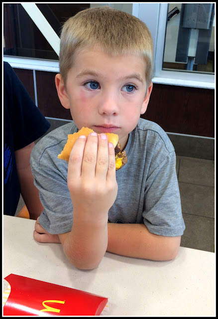 I think this was a picture meant to show the red mark by Jack's eye after a play place incident with a brother, BUT hear me out McDonalds marketing team: Kind of wistful, am I right? Who knew that Jack was a such a natural in selling folks on pizza and cheeseburgers??