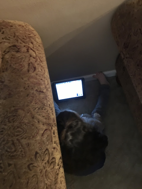 Remote learning... always a challenge. The kids stayed home a lot on Chuck's days off so he could be around to help out - and take cute pictures of them working/ not working: