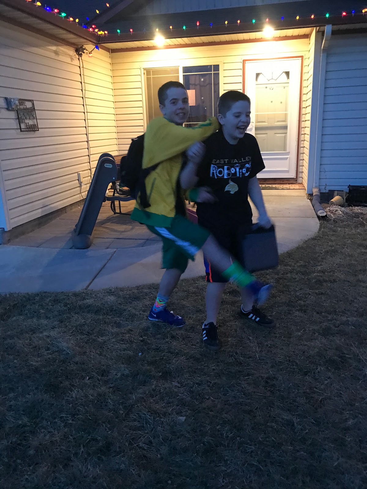 Genuinely no idea what was happening or why Clyde was dressed up on a Wednesday night? Maybe it was Will's first night going to Young Mens? Dunno, but I took a picture of these two adorable boys and I love them.