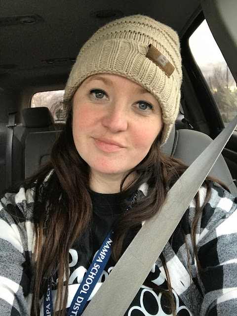 Random school selfie with my desk and co-worker in the background. NO idea the point to this picture but it's a nice record!